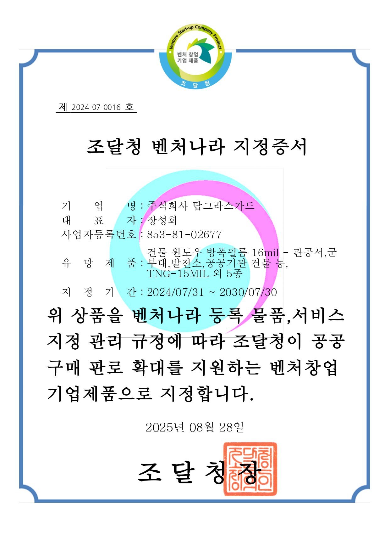 우리 가족의 안전과 재산을 지켜주는 안전/방범/방탄/방폭 필름은 인증과 보증이 확실한 공인된 업체, 티앤지 필름을 선택하세요.