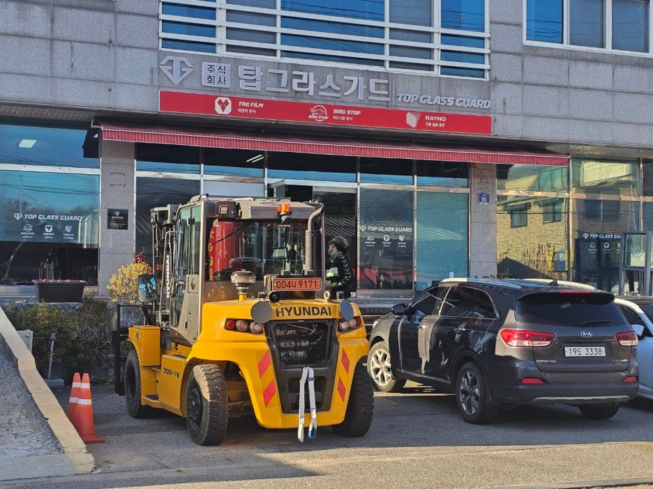 고양시 중장비 썬팅 – 지게차 틴팅 안전/방탄필름 시공 사례