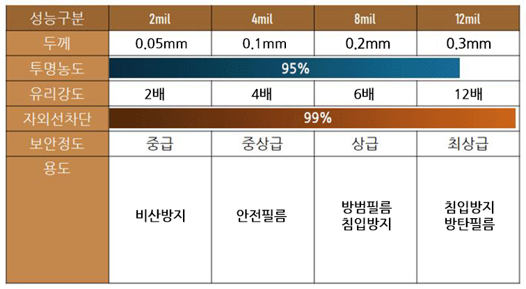 시공한 방범 필름은 8mil Clear (0.2mm 이상의 두께)로