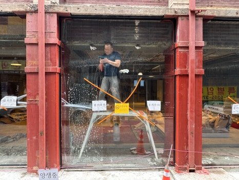 리모델중인 종로의 현각빌딩 1층 건물은 넓은 유리창이 많아 외부 침입과 유리 파손에 대한 우려가 컸습니다.