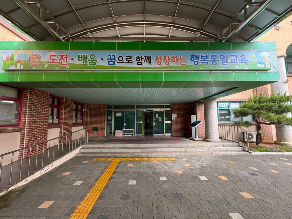 경기도 파주에 위치한 통일 초등학교 출입문에 시공한